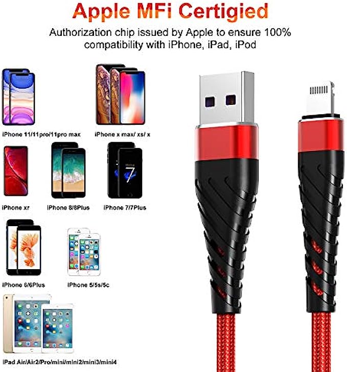 【Compatible With】This iphone charging cord 10ft compatible with iPhone 11/11Pro/11Max / X XS Max XR / 8 / 8 Plus / 7 / 7 Plus / 6s Plus / 6s / 6 Plus / 6 / SE / 5s / 5c / 5 / iPad Pro / iPad Air / Air 2 / iPad mini / mini 2 / mini 4 / iPad 4th gen / iPod Touch 5th gen / iPod nano 7th gen.