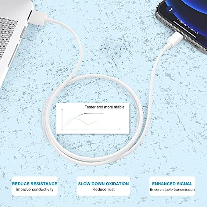 ♥【Safe Fast Charging】:AZMOGDT iPhone charger cable are made of high purity copper core and smart intelligent chip with overcharge protection, stable current protection, automatic switching and battery protection. ♥【Perfect Compatibility】: Precise interface design, iPhone charger compatible with iPhone SE 2020/13/12Pro Max/11Pro Max/Xs Max/XR/8/8Plus/7/7Plus/6S/6S Plus/SE/iPad and More. ♥【MFI Certified Lightning Cable】: Each cable contains an authorization chip issued to ensure 100% compatibility with iPhone.Built with terminal and smart chip. connector with a lightning end, ensured safe charging for your devices. Enjoy fast data transfer, syncing and charging. ♥【Ultimate Durability】: iPhone Charger Designed and built with premium materials, it has been tested to withstand at least 15000 cycles of 95 degree bend and 10000 plugging and unplugging lifespan which is 12 times stronger than original device cables. Seamless laser-welded connector can even withstand 15kg exterior force without breaking off ♥【What You Get】5 pack (6/6/6/10/10FT)MFI Certified iPhone charging cables .this iPhone charger cable long enough to be convenient to charge your device in bedroom, sofa, office, travel,even when you are on the backseat of the car.