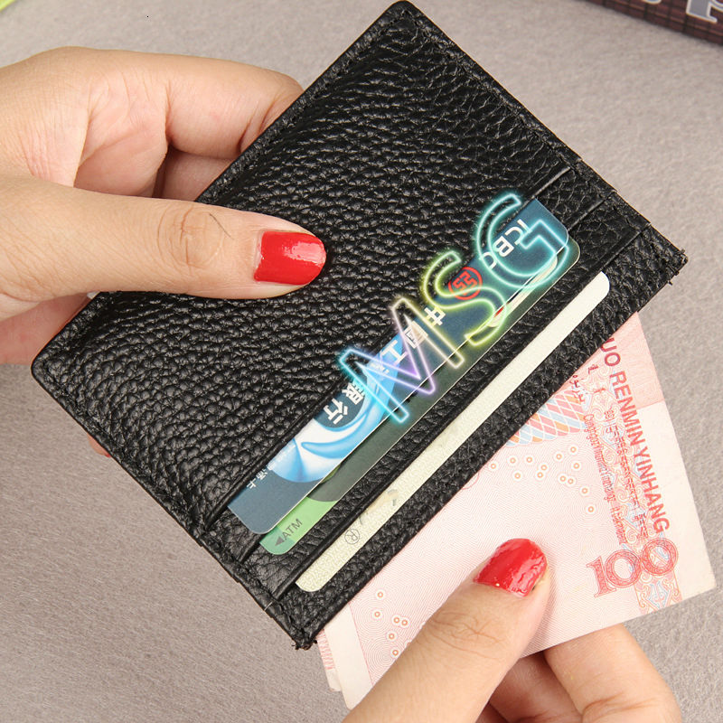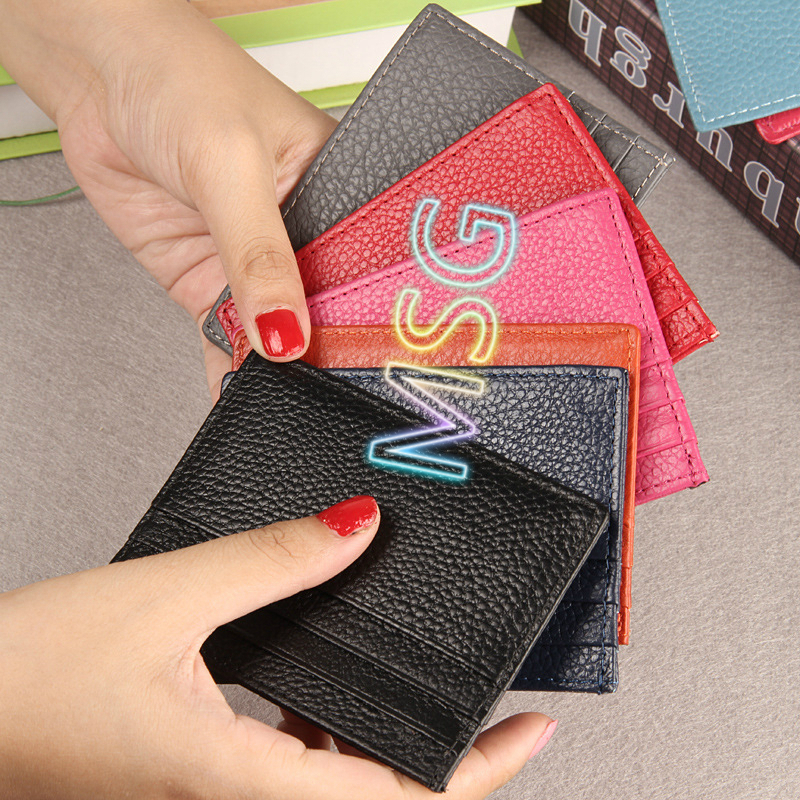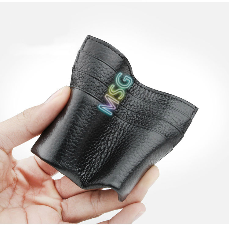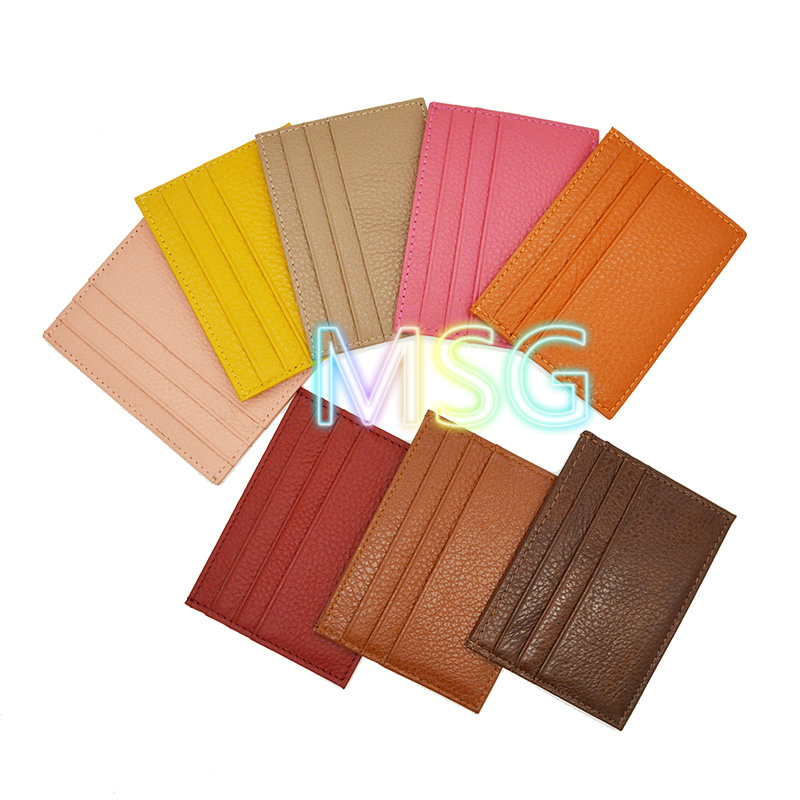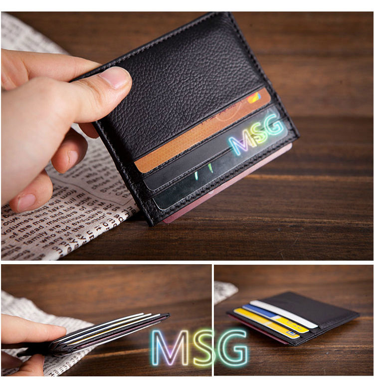 【MSG】Cowhide Leather Credit Card Holder Small Short Wallet Unisex Fashion Coin Bag Lichee Pattern Bank Cardholder Bus Card Set