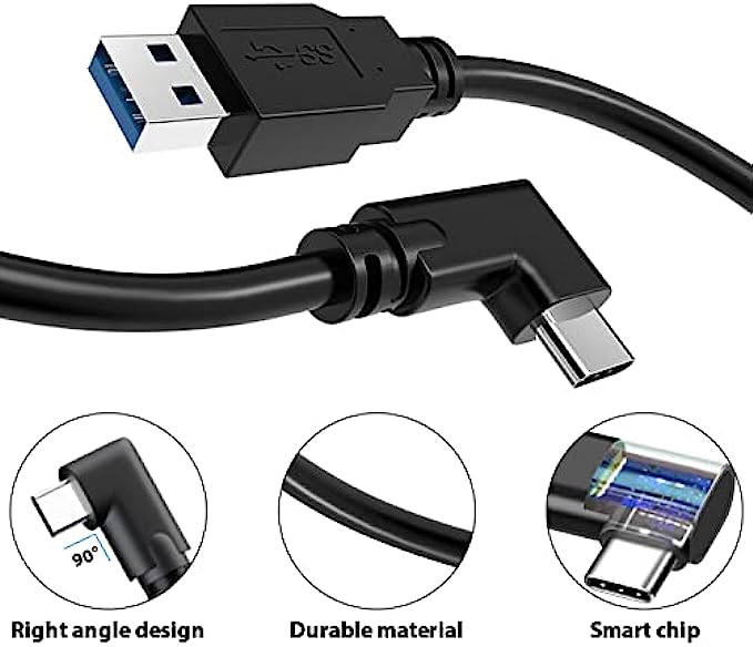 • LINK CABLE: 16-foot long charger, L-shaped design, not easy to fall off, allowing you to move freely without restriction while playing games. 90° right angle, preventing disconnection, more stable, giving you an immersive VR gaming experience. usb 3 to usb c to pc, up to 3A to charge while in use, saving charging time.