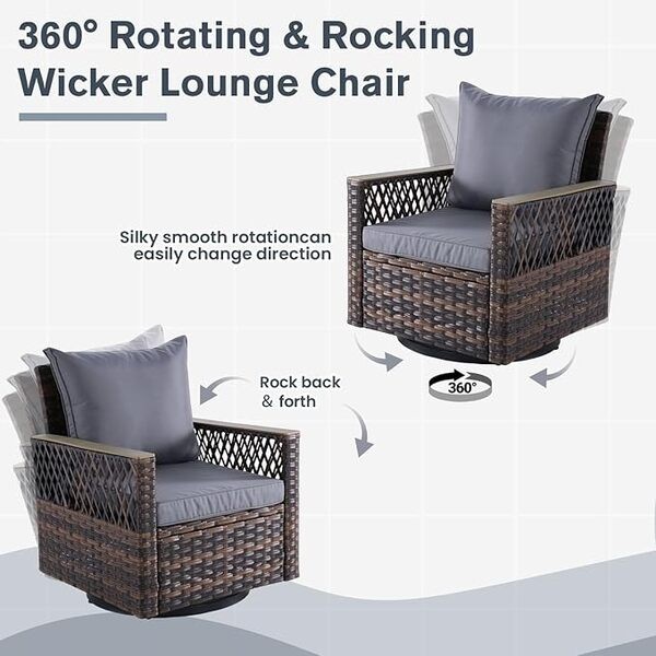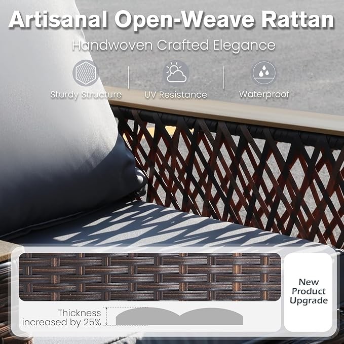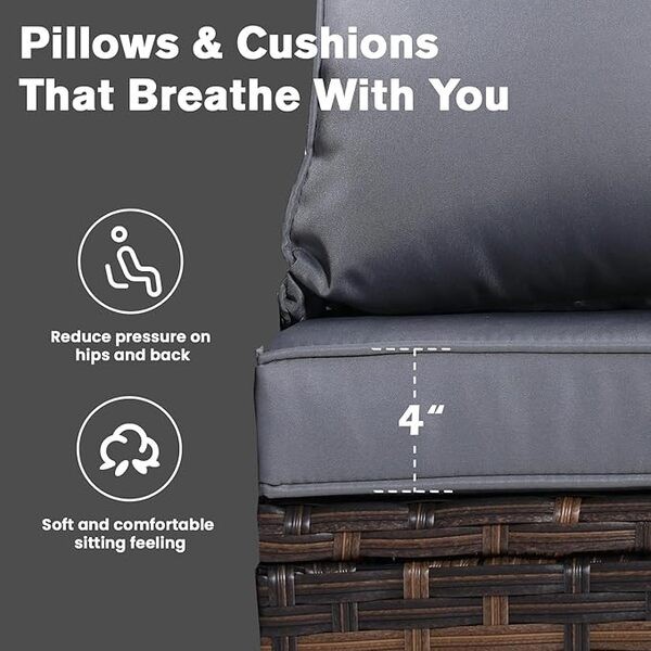 Water-Resistant Cushions for Outdoor Comfort: Each seating piece comes with water-resistant cushions that are easy to clean and maintain. Cushions add softness to the outdoor wicker furniture, enhancing comfort during garden or backyard lounging.