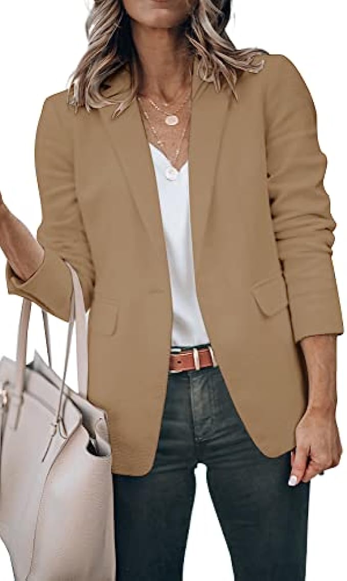 • Features: Basic lapel collar blazer jacket for women, a single front button design, two functional flap pockets, perfectly carrying some necessity, or nailing a chic look.