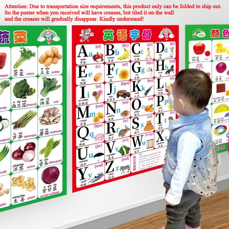 Educational Posters for Kids Preschool Learning Alphabet Numbers Shapes Colors Laminated Poster Chart