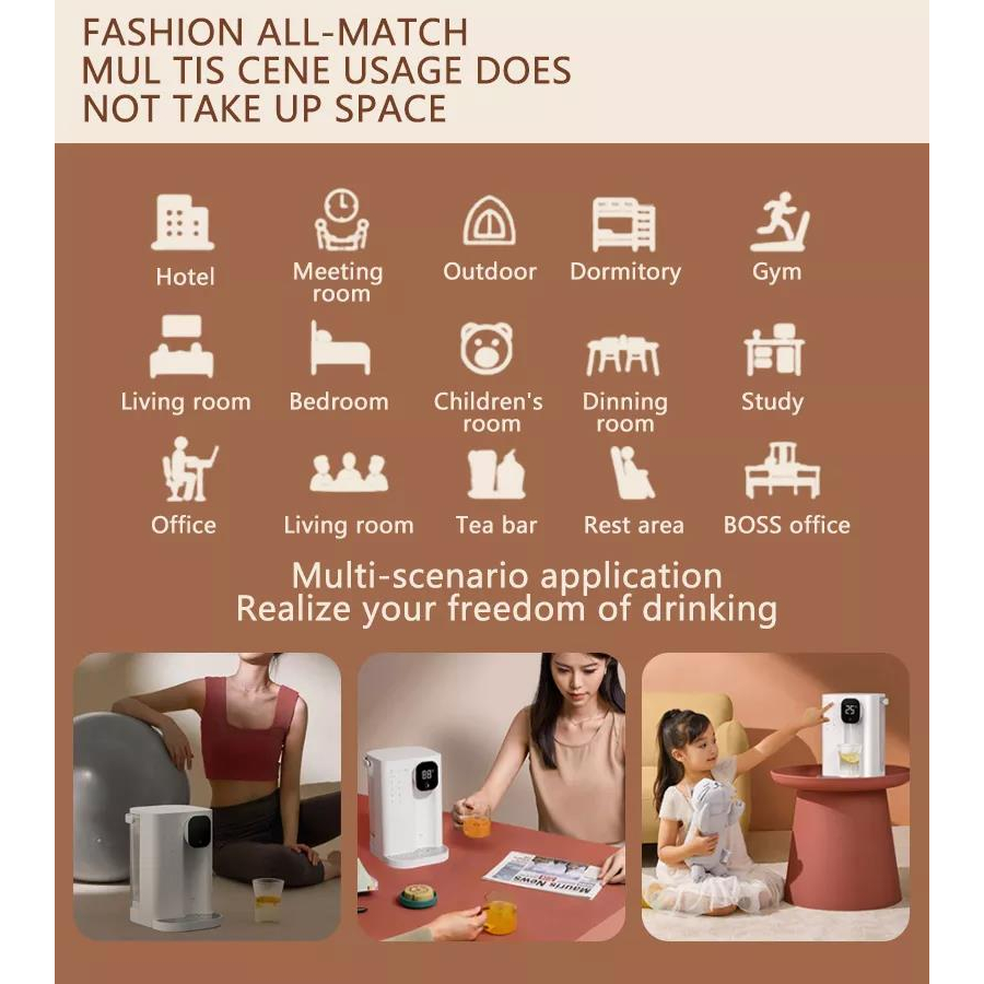 HODEKT JMEY T2 Home and office Desktop Instant Hot Water Dispenser with 3L water tank Mini and Portable Tea Making Bar One-button Intelligent Speed Heating 4-stage Water Temperature Electric Kettle Re