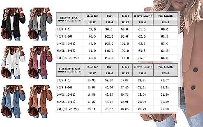 • ❤️Chic Look: The basic blazer jacket for women features lapel collar, draped open front cardigans, double Breasted front button design.