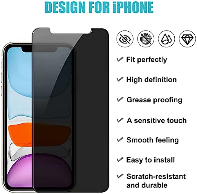 • ?[Case Friendly] iPhone 11/iPhone XR privacy screen protector will allow you to use almost all kinds of case.It is easy to finish the protectors by aligning the edges and the smooth feel allows you to enjoy every touch with the phone.