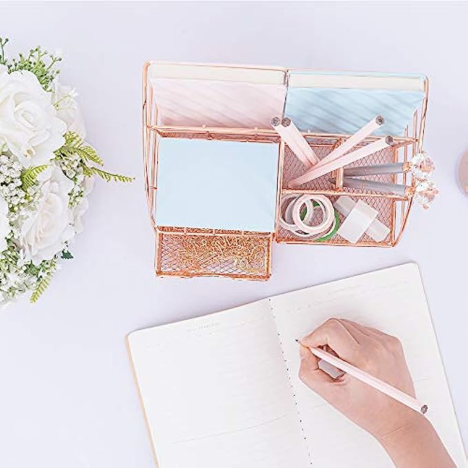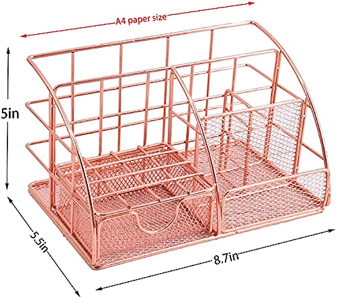 Convenient And Practical: Desk organizer comes with rose metal finish design - elegant and noble. Mesh design concept - more fashionable and convenient, so that it can be used in different places, storing large or small stationery and toiletries at any time. , the desk organizer is also a fashionable gift.