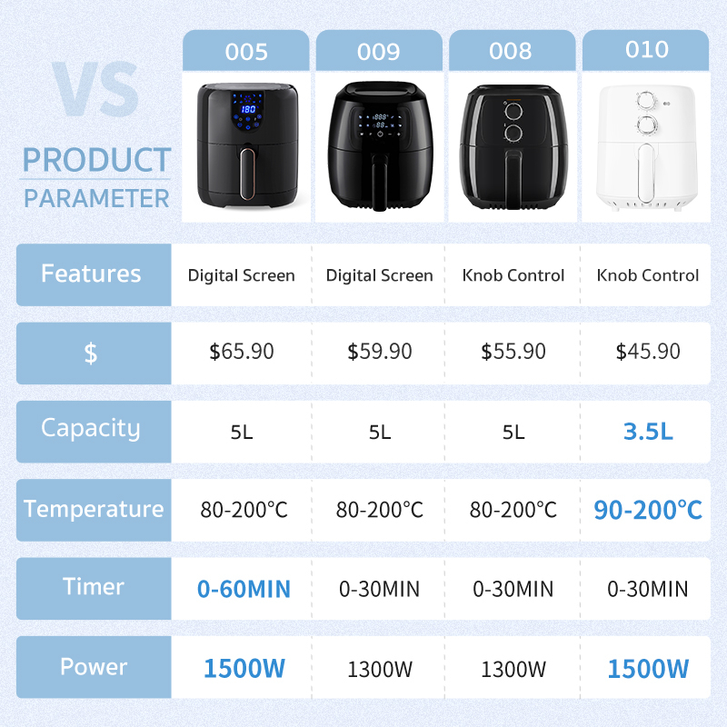 Simplus Air Fryer 5L/3.5L Digital Screen/Knob Control 1500W 60min/1300W 30min Timer Oil-free Dehydration