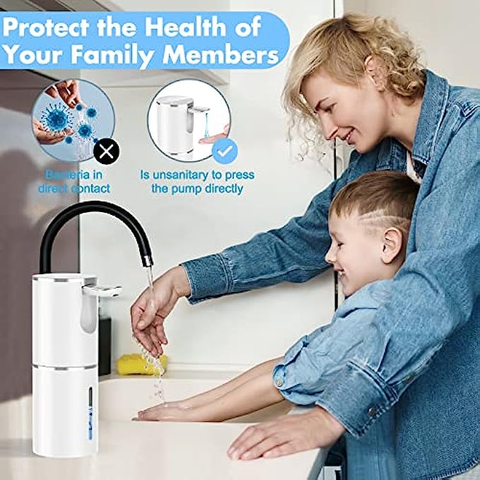 FOLDABLE WATERPROOF AND WALL MOUNTED DESIGN: The nozzle and charging port are protected to IPX4 waterproof rating (avoid immersion in water), making it easier to clean. The hands-free soap dispenser foldable design can be placed on the bathroom wall or on the side of the kitchen sink to protect the soap dispenser from dust and water splashes.