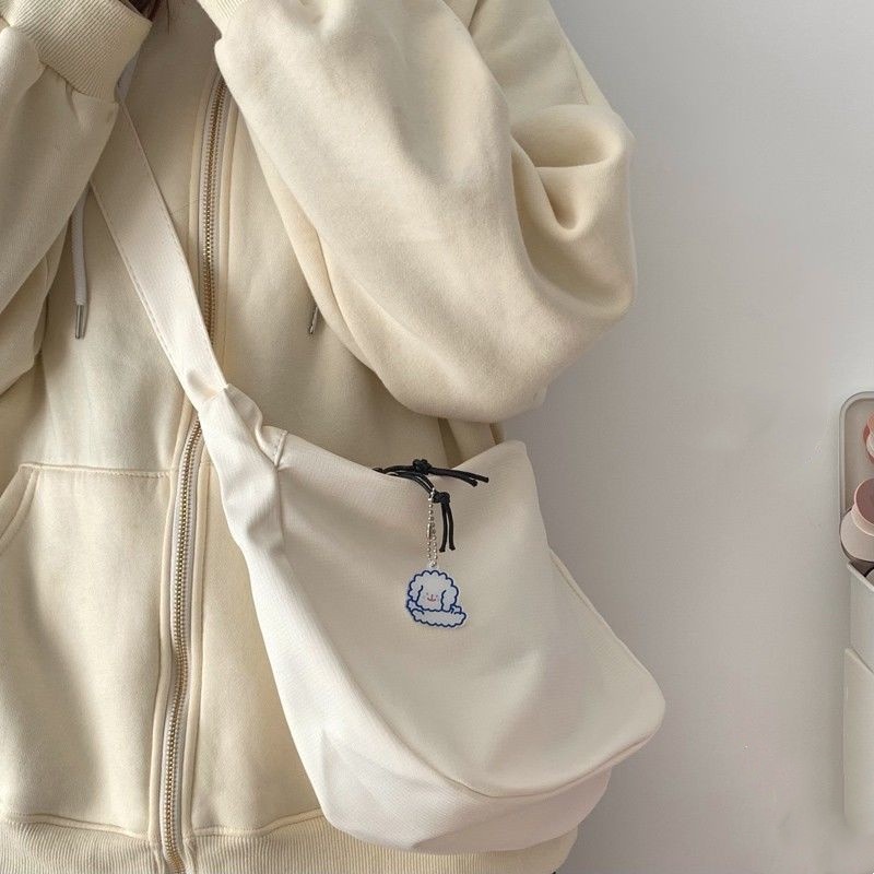 Crossbody Bag Student ins Japanese Shoulder Simple Waffle Casual Art Messenger Solid Color Dumpling YKD YK