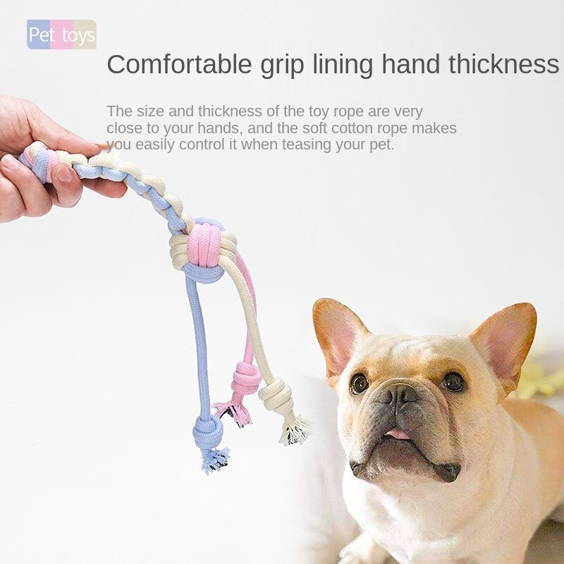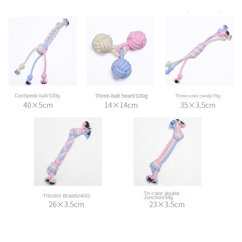 Appearance:Cute and pretty Quality:Good Suitability:For playing fetch and chewing My lil puppy loves chewing on them and playing fetch with them! The colours are pretty and aesthetic too! Think it will last quite a long time cuz the rope material is thick. Affordable too!