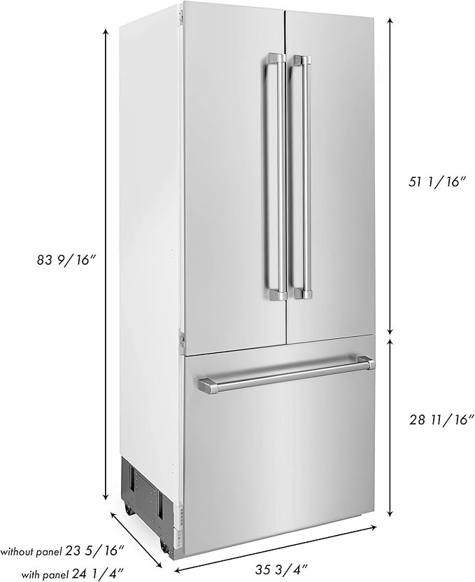 ZLINE RBIV-36 ZLINE 36 Inches 19.6 Cu. Foot Panel Ready French Door Built-In Bottom Freezer Refrigerator with Water Dispenser and Ice Maker (RBIV-36); Handles and Panels Not Included